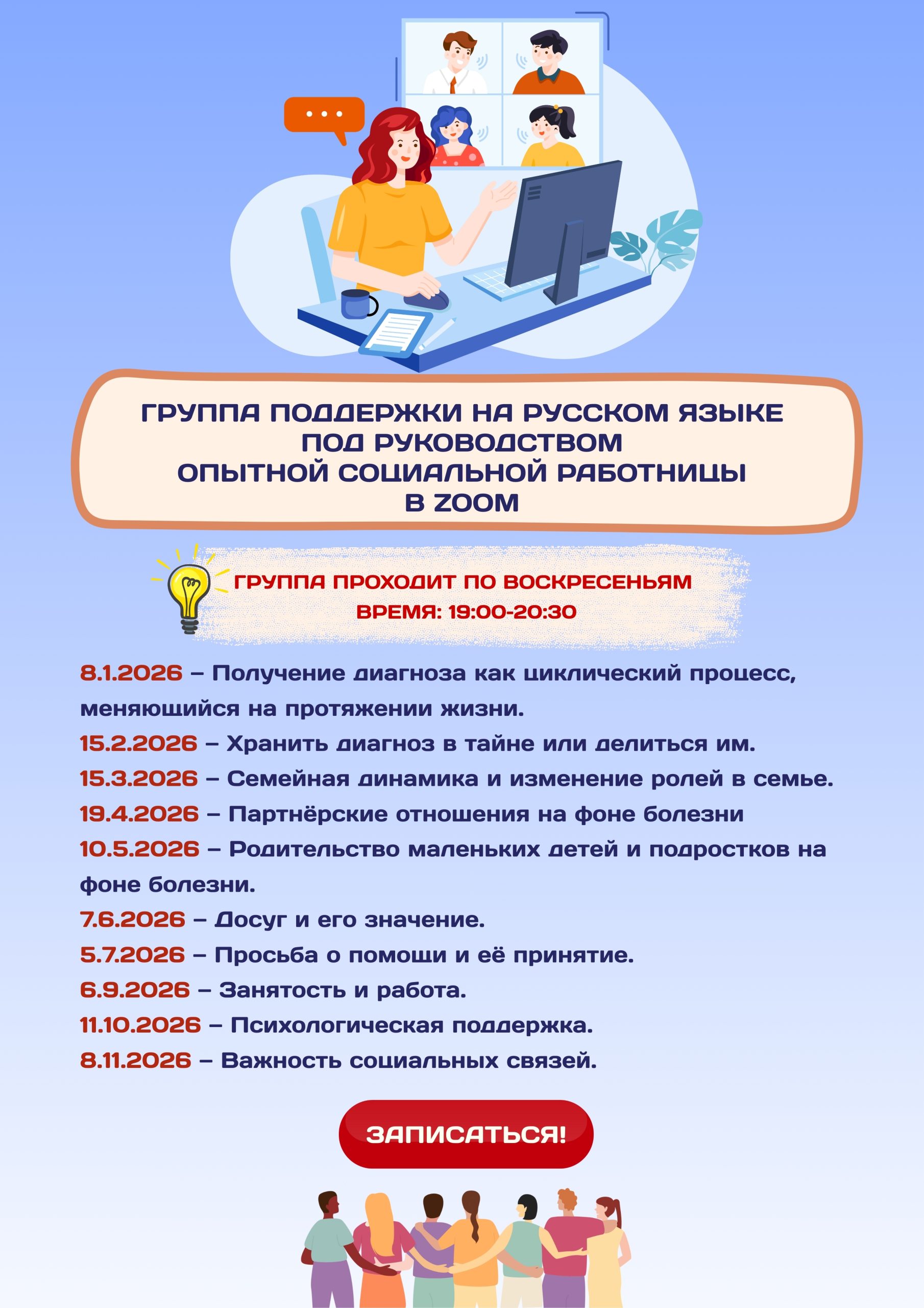 Группа поддержки на русском языке под руководством опытной социальной работницы в Zoom